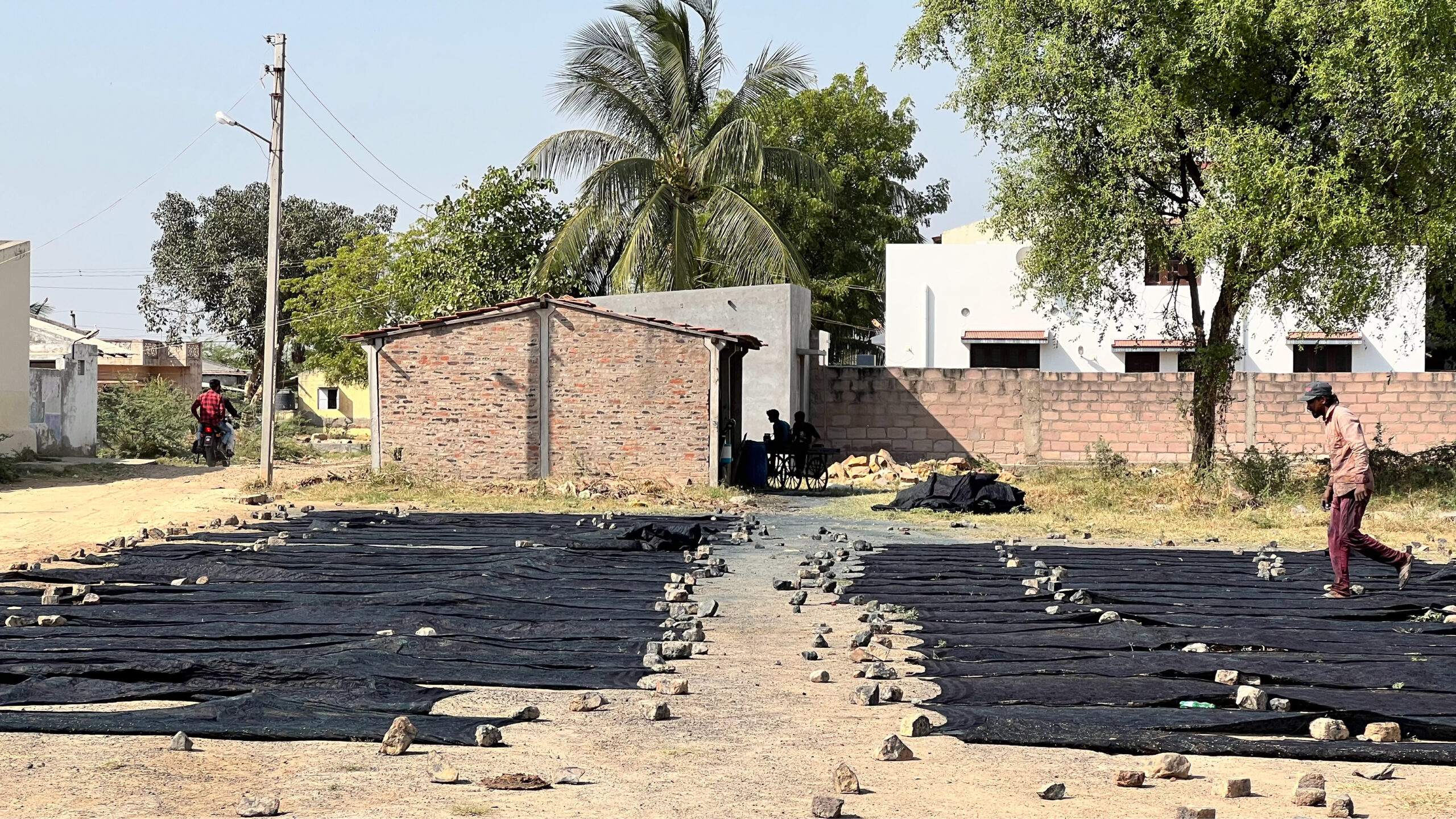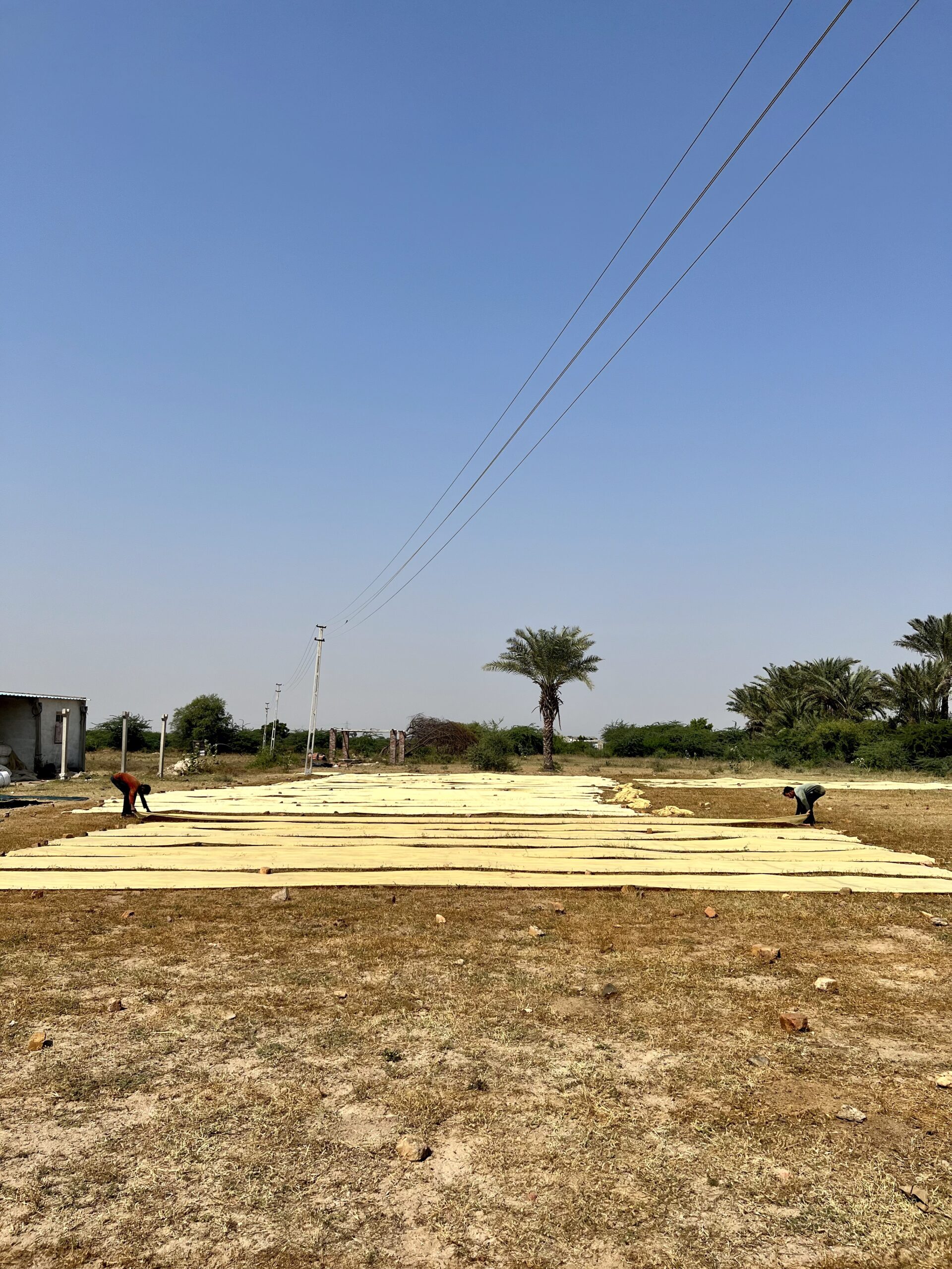 Fabric is dipped in Harda (myrobalan) – a natural mordant widely used in traditional Indian dyeing.