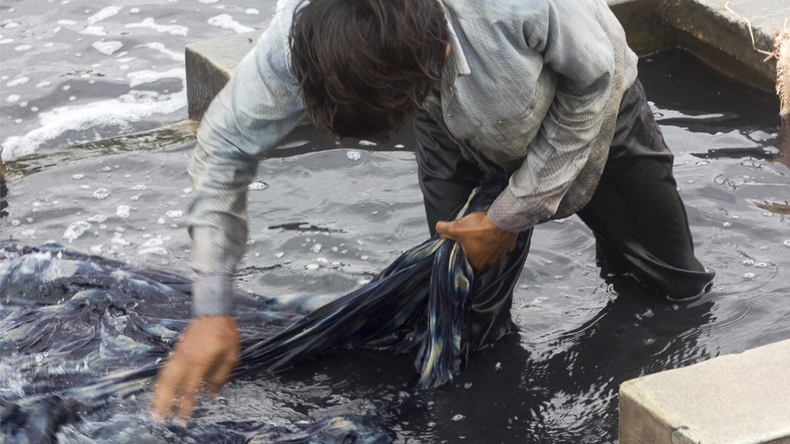Once the desired depth of blue is achieved through repeated dipping and oxidation, the fabric is carefully washed.