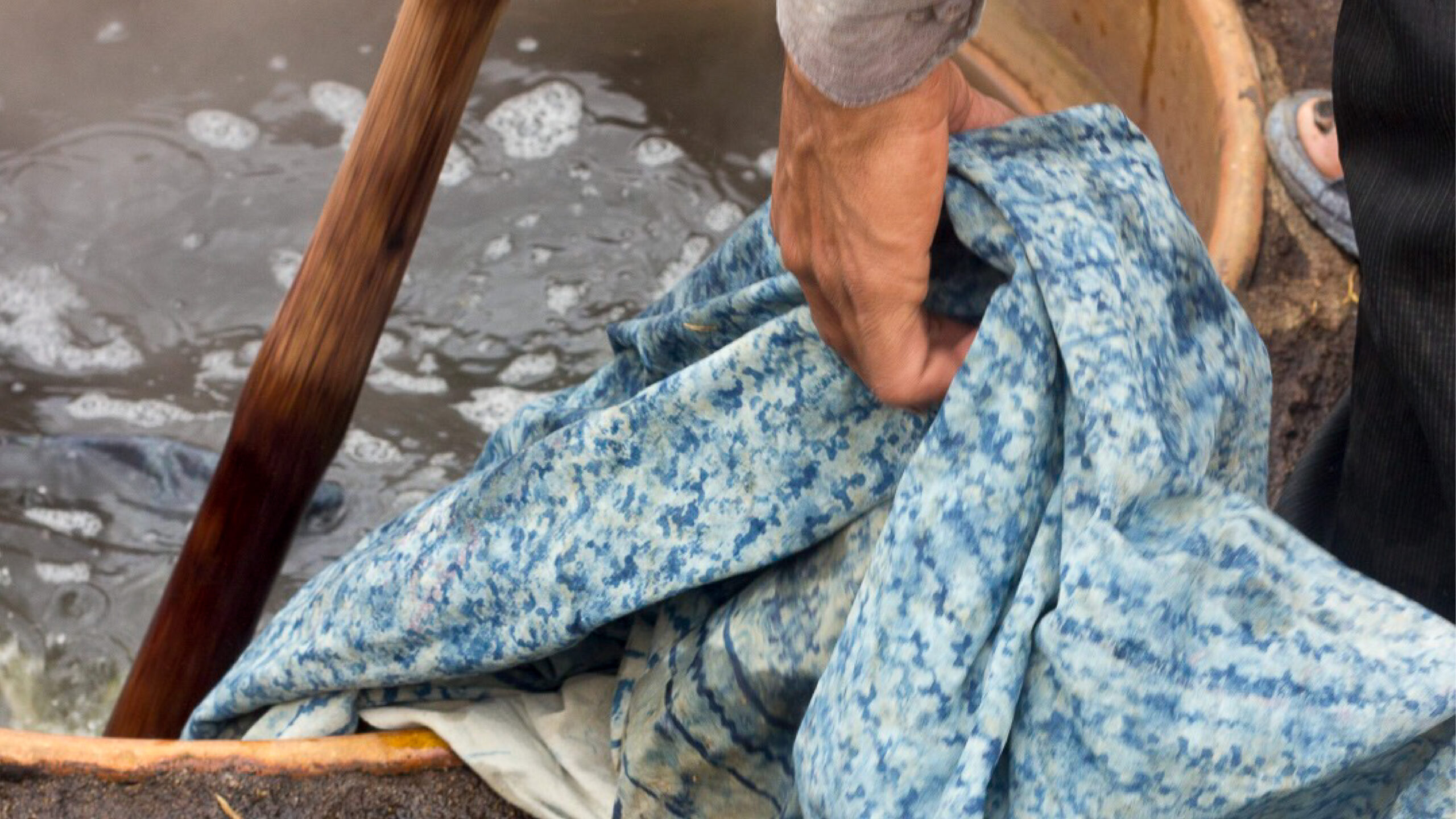 After boiling, the cloth is washed again. This final wash removes any remaining loose pigment and reveals the true depth of the indigo blue.